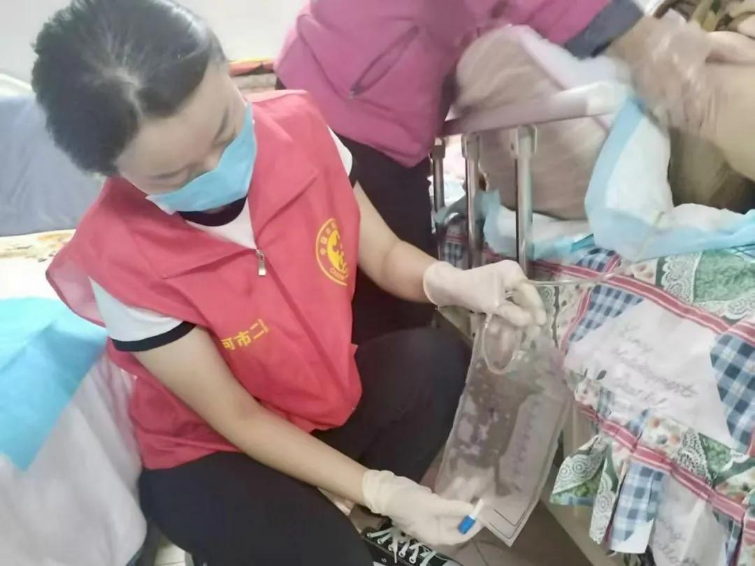 86歲的張奶奶因腦梗塞后遺癥導(dǎo)致骶尾部及全身多處皮膚壓瘡,需要暫時(shí)留置尿管,出院前,護(hù)士詳細(xì)為她及家屬講解了居家護(hù)理注意事項(xiàng),并推薦了“豫健護(hù)理到家”服務(wù)。3月28日,考慮到老人行動(dòng)不便、往返醫(yī)院困難,家屬通過(guò)平臺(tái)預(yù)約了上門(mén)更換尿管服務(wù)。老年醫(yī)學(xué)科護(hù)士長(zhǎng)接到豫健護(hù)理到家平臺(tái)下單通知,立即派資深護(hù)士攜帶相關(guān)護(hù)理用品來(lái)到張奶奶家中。護(hù)理人員嚴(yán)格按照操作規(guī)范,輕柔地為老人更換尿管,并耐心指導(dǎo)家屬日常護(hù)理要點(diǎn),如觀察尿液顏色、保持管路通暢及皮膚傷口護(hù)理等。“不用來(lái)回奔波,在家就能享受和醫(yī)院一樣的服務(wù),真的太方便了!”張奶奶的女兒連連稱贊。