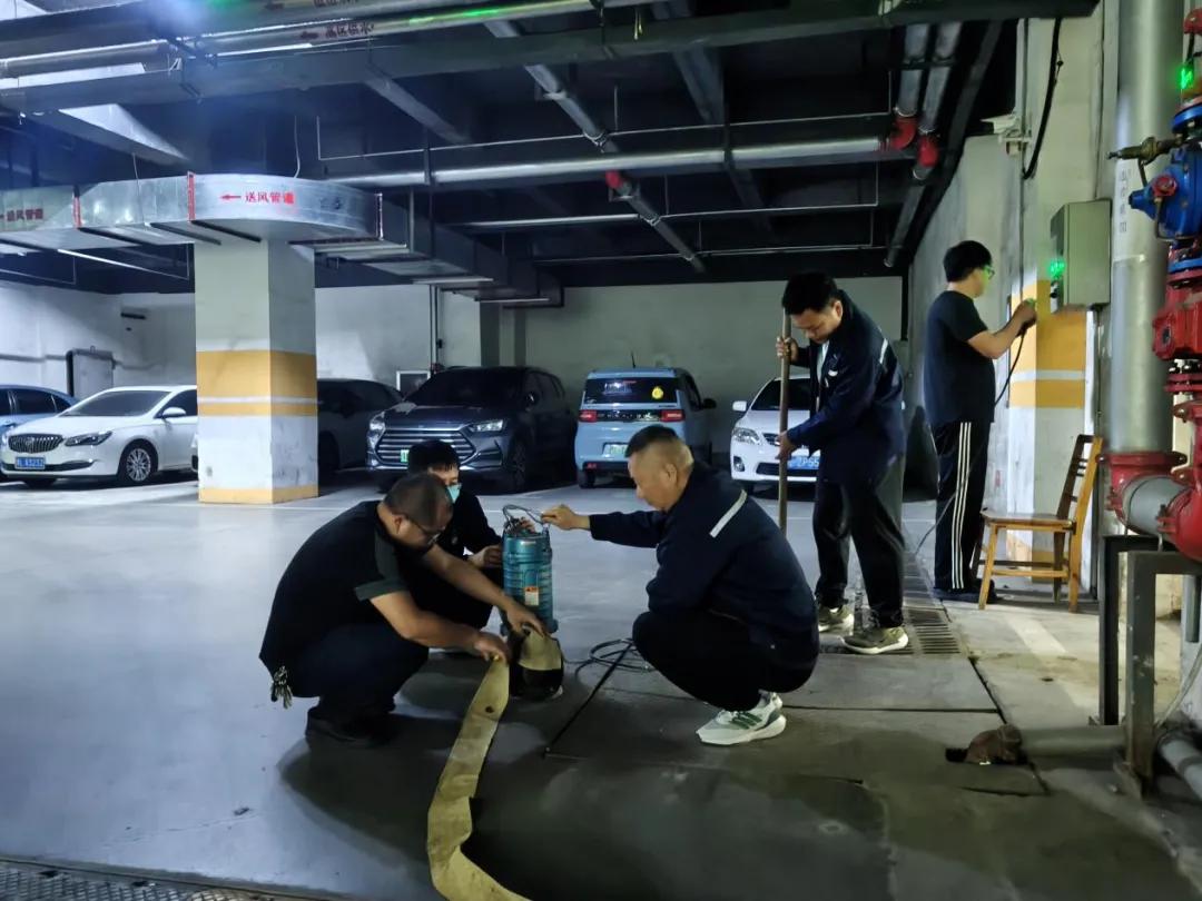 演練模擬漯河市區(qū)出現(xiàn)持續(xù)強降雨天氣,由于短時間降雨量過大,造成雨水倒灌,致使地下車庫、配電間等重點地下空間區(qū)域進水?,F(xiàn)場值班發(fā)現(xiàn)險情,報告防汛總指揮,總指揮迅速啟動防汛搶險應急預案,組織防汛應急救援隊進行搶險救援,保衛(wèi)人員負責疏散撤離,同心協(xié)力處置險情。