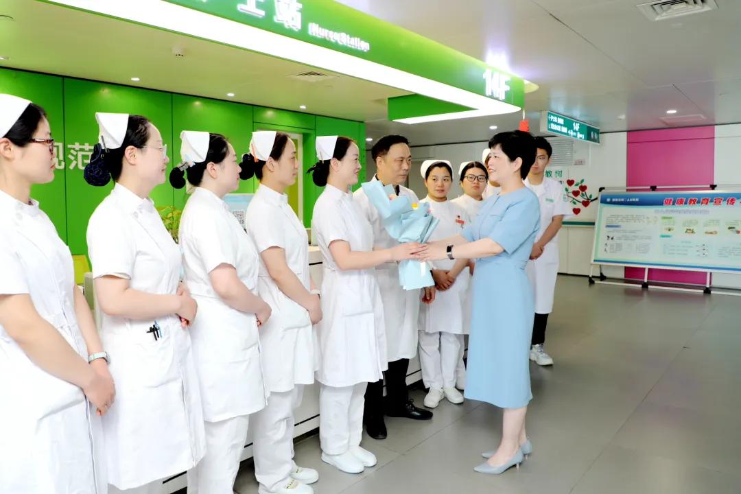 關愛護士隊伍,守護人民健康。5月12日上午,為慶祝第114個“5·12”國際護士節(jié),市二院黨委書記魏松,黨委副書記、院長胡海英攜院班子成員及相關職能科室負責人深入臨床一線開展節(jié)日慰問活動,向全院護理工作者送去鮮花,并致以節(jié)日的祝福和誠摯的問候。