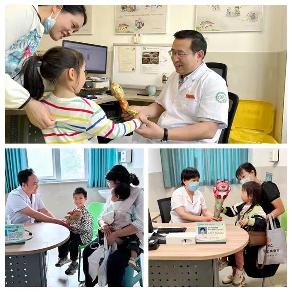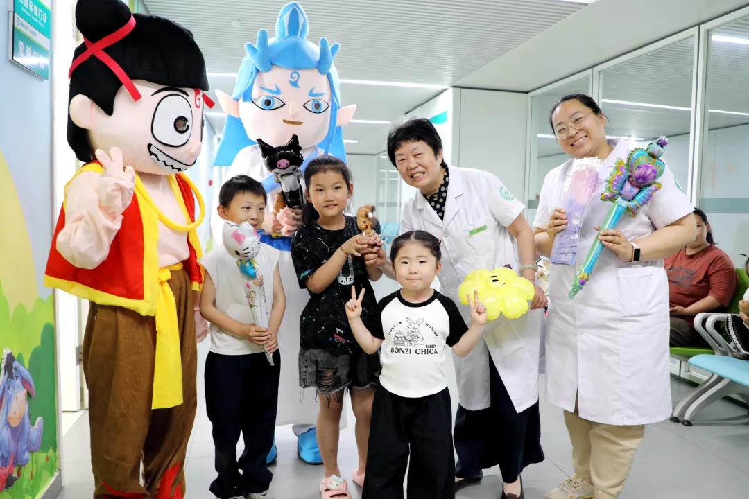 門診大廳化身兒童樂(lè)園,醫(yī)護(hù)人員化身哪吒、敖丙、花仙子等諸多可愛的卡通人物與小朋友們熱情互動(dòng),友好交流,派發(fā)精心準(zhǔn)備的節(jié)日禮物。市二院黨委書記魏松,黨委副書記、院長(zhǎng)胡海英攜班子成員及兒科專家、醫(yī)護(hù)團(tuán)隊(duì)為小朋友們送上暖心的節(jié)日禮物與祝福,與孩子們共度“六一”。