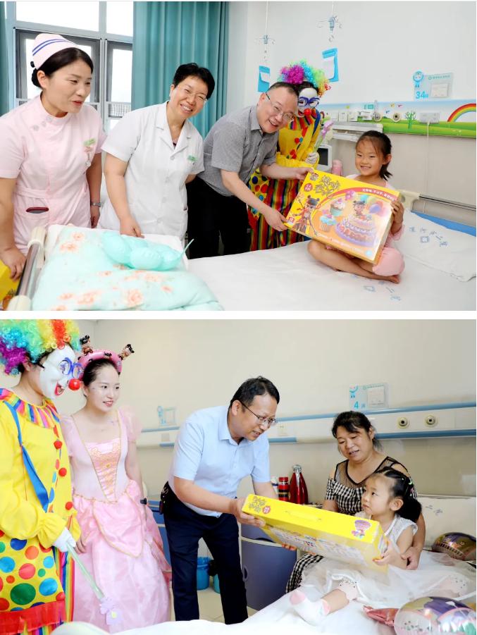 隨后,院領(lǐng)導(dǎo)一行分別到兒科門診、住院病房,看望慰問(wèn)就診、住院的孩子們。走訪過(guò)程中,院領(lǐng)導(dǎo)為孩子們送上節(jié)日祝福與精美的禮物,俯身與孩子們親切交流,細(xì)心詢問(wèn)他們的治療情況,并特別囑咐醫(yī)護(hù)人員要始終秉持醫(yī)者仁心,以專業(yè)的醫(yī)療技術(shù)和無(wú)微不至的關(guān)懷服務(wù)每一位患兒。歡樂(lè)的笑容在孩子們臉上綻放,溫馨的氛圍感染著在場(chǎng)的每一個(gè)人,患兒家屬紛紛對(duì)醫(yī)院領(lǐng)導(dǎo)的暖心慰問(wèn)表示誠(chéng)摯的謝意。