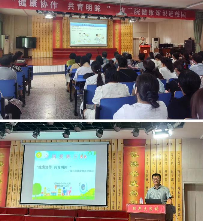 眼科主任李立應(yīng)邀走進(jìn)受降路幼兒園家長課堂,開展眼健康科普講座。他以《兒童常見眼病的診斷和治療》為題,用通俗易懂的語言詳細(xì)講解了兒童常見的近視、斜視、弱視、上瞼下垂和眼瞼內(nèi)翻倒睫,以及這些眼病對(duì)孩子們視力發(fā)育的影響。李立主任強(qiáng)調(diào),幼兒時(shí)期是視力發(fā)育的關(guān)鍵階段,家長要注意培養(yǎng)孩子良好的用眼習(xí)慣,嚴(yán)格控制孩子使用電子產(chǎn)品,保證充足的戶外活動(dòng)。針對(duì)家長們提出的熱點(diǎn)問題,李立主任一一耐心解答,給出個(gè)性化建議。