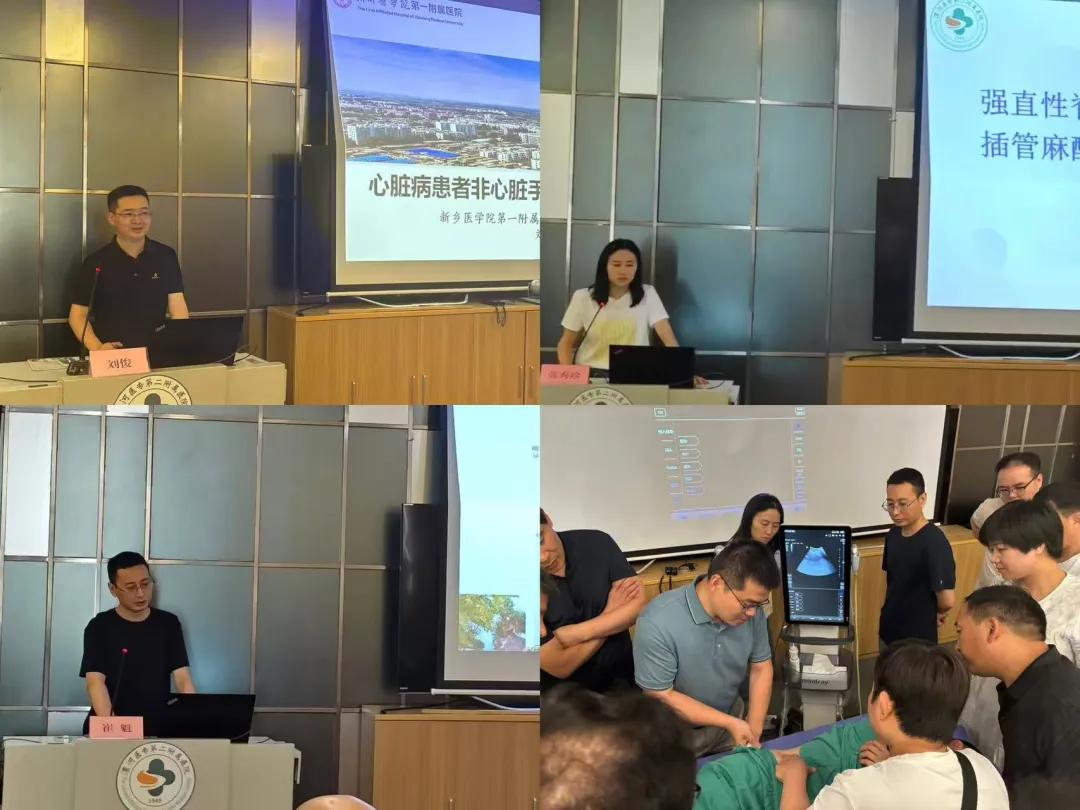 特殊患者麻醉管理質(zhì)控專題培訓(xùn)會(huì)上新鄉(xiāng)醫(yī)學(xué)院第一附屬醫(yī)院麻醉與圍術(shù)期醫(yī)學(xué)科劉俊主任講解了《心臟病患者非心臟手術(shù)的麻醉管理》,漯河市骨科醫(yī)院麻醉科副主任醫(yī)師張秀珍分享了《強(qiáng)直性脊柱炎患者纖支鏡氣管插管麻醉管理》,漯河市中心醫(yī)院麻醉科崔魁主任以《冠心病患者的麻醉管理》為題講解了冠心病患者的麻醉管理要點(diǎn),鄭州大學(xué)第一附屬醫(yī)院麻醉與圍術(shù)期醫(yī)學(xué)科葉皓天教授以現(xiàn)場(chǎng)授課結(jié)合實(shí)操的方式講授了《超聲引導(dǎo)下外周神經(jīng)阻滯》。