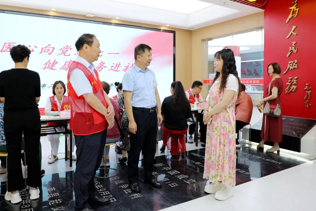 6月25日上午,市二院黨委書記魏松、紀(jì)委書記孟德陽帶領(lǐng)門診黨支部黨員志愿者到新華街社區(qū)開展“醫(yī)心向迎七一 健康服務(wù)進(jìn)社區(qū)”義診宣傳活動(dòng),以實(shí)際行動(dòng)向黨的生日獻(xiàn)禮。