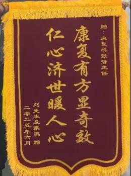 與此同時(shí),科室還收到一面印有“康復(fù)有方顯奇效,仁心濟(jì)世暖人心”字樣的錦旗。在患病期間,患者飽受腰痛、下肢麻木等癥狀折磨,嚴(yán)重影響日常生活。來(lái)到康復(fù)科后,科室負(fù)責(zé)人張靜帶領(lǐng)科室團(tuán)隊(duì)根據(jù)其病情制定個(gè)性化針灸治療方案,通過(guò)精準(zhǔn)取穴、規(guī)范施針,配合專(zhuān)業(yè)康復(fù)指導(dǎo),逐步減輕患者病痛,助其恢復(fù)正常生活?;颊邽楸砀屑ぃ刭?zèng)錦旗,錦旗上的話語(yǔ)是對(duì)科室治療效果的高度認(rèn)可。