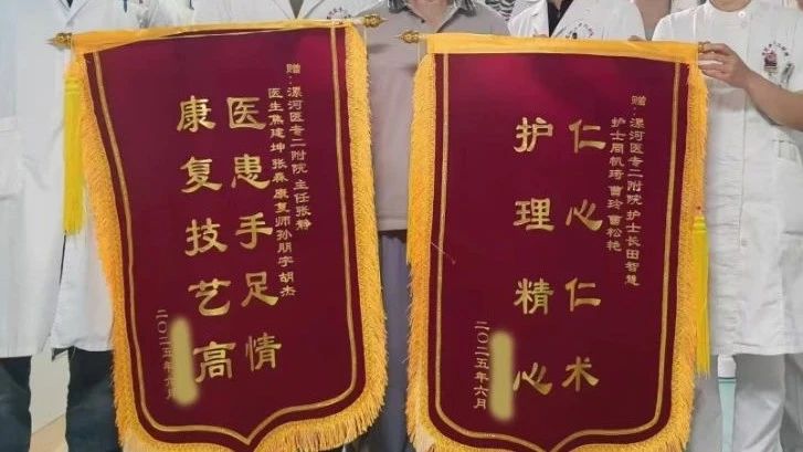 出院之際,患者特意送來兩面錦旗:一面寫給護理團隊,致謝“仁心仁術(shù),護理精心”;一面獻給醫(yī)生與治療師,感恩“醫(yī)患手足情,康復技藝高” 。這一面面的錦旗,是認可,更是康復醫(yī)學科“以患者為中心”的生動寫照。