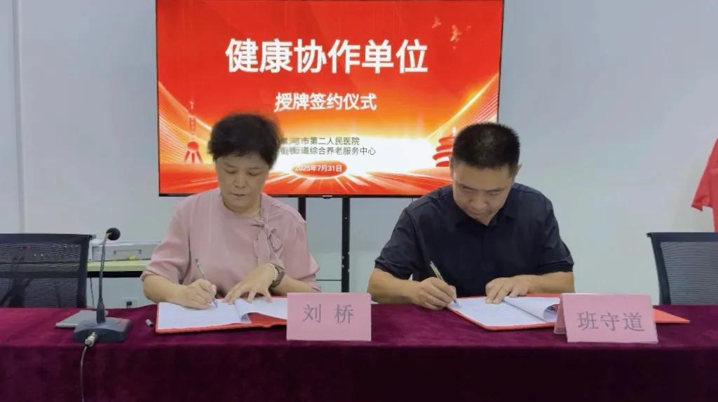 為應對人口老齡化浪潮,滿足老年人多元化健康需求,7月31日上午,市二院與馬路街街道綜合養(yǎng)老服務中心舉行“健康協(xié)作單位”授牌儀式,市二院副院長劉橋、醫(yī)聯(lián)體辦公室副主任張靜出席儀式。