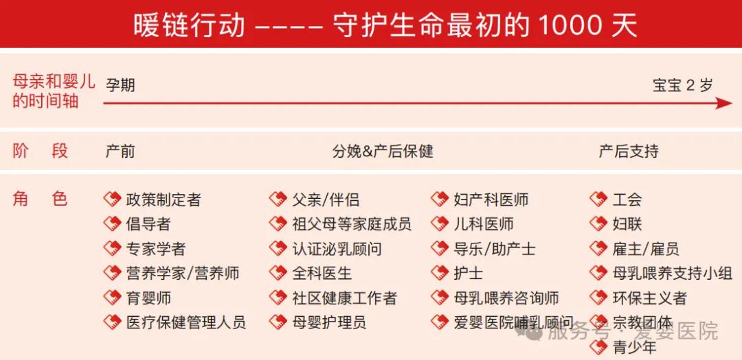 “暖鏈”行動是一項保護(hù)、促進(jìn)和支持母乳喂養(yǎng)的全球性行動,倡導(dǎo)以母親和嬰兒為核心,遵循生命最初1000天的時間軸,所有支持母乳喂養(yǎng)的醫(yī)務(wù)人員及社會各界,都是暖鏈中的一環(huán),通過各環(huán)節(jié)之間的協(xié)作,為母嬰家庭傳遞一致的信息并提供支持措施,幫助母親和嬰兒獲得持續(xù)的、滿意的、有效的母乳喂養(yǎng)體驗。