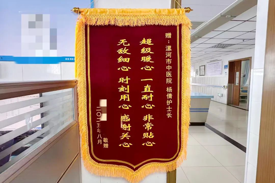 近日,科室里上演了一幕動(dòng)人場(chǎng)景:患者及家屬將一面寫著 “超級(jí)暖心 一直耐心 非常貼心,無(wú)敵細(xì)心 時(shí)刻用心 感謝關(guān)心” 的錦旗送到楊倩護(hù)士長(zhǎng)手中。字字句句都凝結(jié)著對(duì)護(hù)理團(tuán)隊(duì)的真摯謝意,也體現(xiàn)了雙向奔赴的醫(yī)患深情。