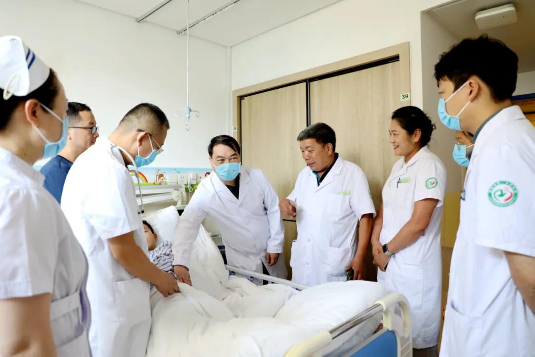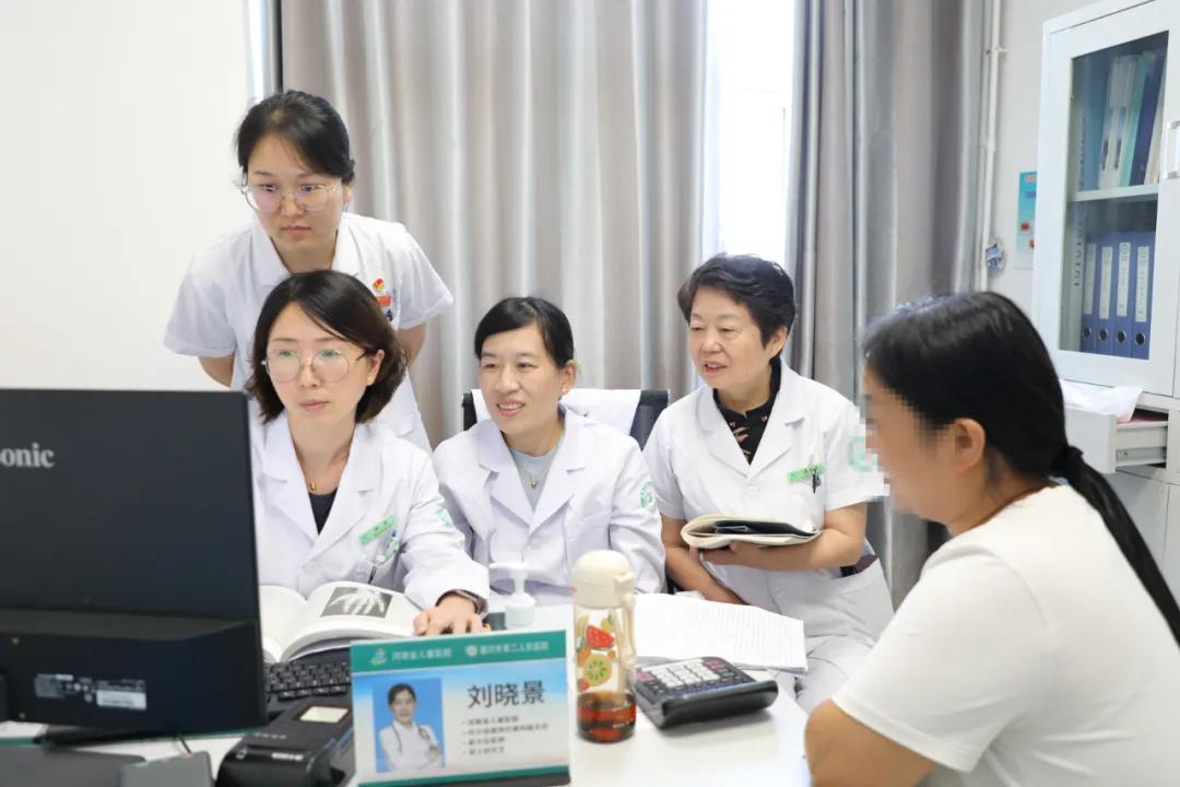 為提升區(qū)域兒科診療水平,惠及本地復(fù)雜、疑難、特色專(zhuān)科病患兒,8月28日,市二院 市兒童醫(yī)院特邀河南省兒童醫(yī)院新生兒外科王獻(xiàn)良主任、內(nèi)分泌遺傳代謝科病區(qū)劉曉景主任、兒童重癥醫(yī)學(xué)科高劉炯主任蒞臨,開(kāi)展多學(xué)科聯(lián)合查房、疑難病例討論及義診活動(dòng)。黨委書(shū)記魏松帶領(lǐng)兒科團(tuán)隊(duì)主任、護(hù)士長(zhǎng)對(duì)前來(lái)義診的專(zhuān)家表示熱烈歡迎。