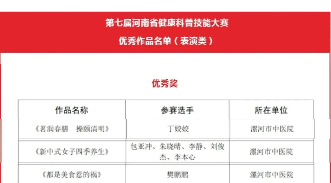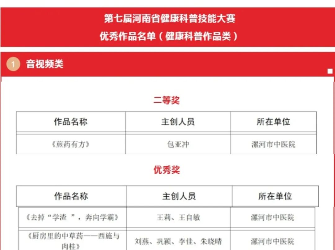 獎(jiǎng)獎(jiǎng)獎(jiǎng)來了——漯河市中醫(yī)院在第七屆河南省健康科普技能大賽中斬獲佳績