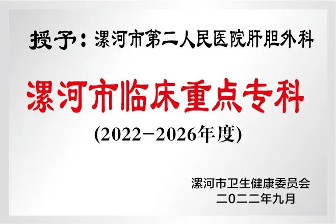 漯河市第二人民醫(yī)院普外科含肝膽外科、燒傷科、泌尿外科、微創(chuàng)外科、普外科。其中肝膽外科為漯河市醫(yī)學重點專科,擁有普通病床46張,重癥監(jiān)護病床5張,該科技術力量雄厚,現(xiàn)有主任醫(yī)師3人,副主任醫(yī)師2人,住院醫(yī)師3人,副主任護師1人,其中碩士研究生2名??剖蚁群髽s獲河南省衛(wèi)生廳科技成果獎4項,漯河市科技成果獎30余項,其中一等獎8項。分別和火箭軍總醫(yī)院、上海東方肝膽外科醫(yī)院、河南省人民醫(yī)院肝膽外科等建立診療聯(lián)盟單位,定期邀請知名專家來院義診及手術,能為漯河市及周邊地區(qū)的病人提供優(yōu)質(zhì)的醫(yī)療服務。