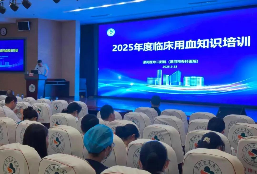 為規(guī)范臨床用血管理、強(qiáng)化醫(yī)療安全意識(shí)、提升醫(yī)務(wù)人員科學(xué)用血水平,保障患者生命安全,9月18日下午,漯河醫(yī)專(zhuān)二附院(漯河市骨科醫(yī)院、漯河市立醫(yī)院)召開(kāi) 2025 年度臨床用血知識(shí)培訓(xùn)與考核會(huì)。會(huì)議特邀河南省腫瘤醫(yī)院邵樹(shù)軍主任、漯河市中心血站婁亞麗科長(zhǎng)授課,漯河醫(yī)專(zhuān)二附院副院長(zhǎng)吳廣良出席并致辭,醫(yī)院各級(jí)臨床醫(yī)師參會(huì)。