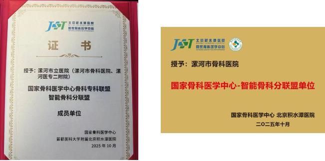 10月18日,國家骨科醫(yī)學中心骨科??坡撁酥悄芄强品致撁耸谂苾x式在北京積水潭醫(yī)院舉辦,漯河醫(yī)專二附院(漯河市骨科醫(yī)院、漯河市立醫(yī)院)憑借在骨科領域的卓越實力和創(chuàng)新探索,成為智能骨科分聯盟成員單位。
