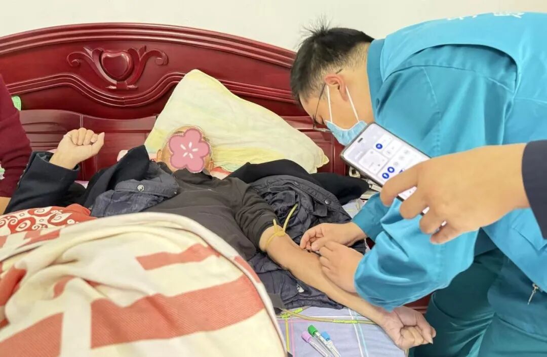 76歲的老人在外地接受膽管癌手術(shù)后返家休養(yǎng),身上仍攜帶兩根術(shù)區(qū)引流管。11月12日早上,家屬突然發(fā)現(xiàn)引流液呈血性,并緊急與主管醫(yī)生溝通后,醫(yī)生建議立即進(jìn)行血常規(guī)和凝血功能檢測(cè),明確病情變化??稍摶颊邉傋鐾晔中g(shù),身體虛弱,行動(dòng)不便,往返醫(yī)院的路程對(duì)他來(lái)說(shuō)無(wú)疑是一種煎熬,焦急的家屬只好匆匆趕往漯河醫(yī)專(zhuān)二附院求助。急診科醫(yī)護(hù)人員幫助家屬通過(guò)“豫健護(hù)理到家”平臺(tái)完成下單操作,經(jīng)驗(yàn)豐富的陳笑寒護(hù)士長(zhǎng)與護(hù)士李鵬舉第一時(shí)間攜帶專(zhuān)業(yè)采血設(shè)備和護(hù)理包,火速趕往患者家中,緩解了患者與家屬的燃眉之急。(盧 闖 劉 旭 袁錦鈺)