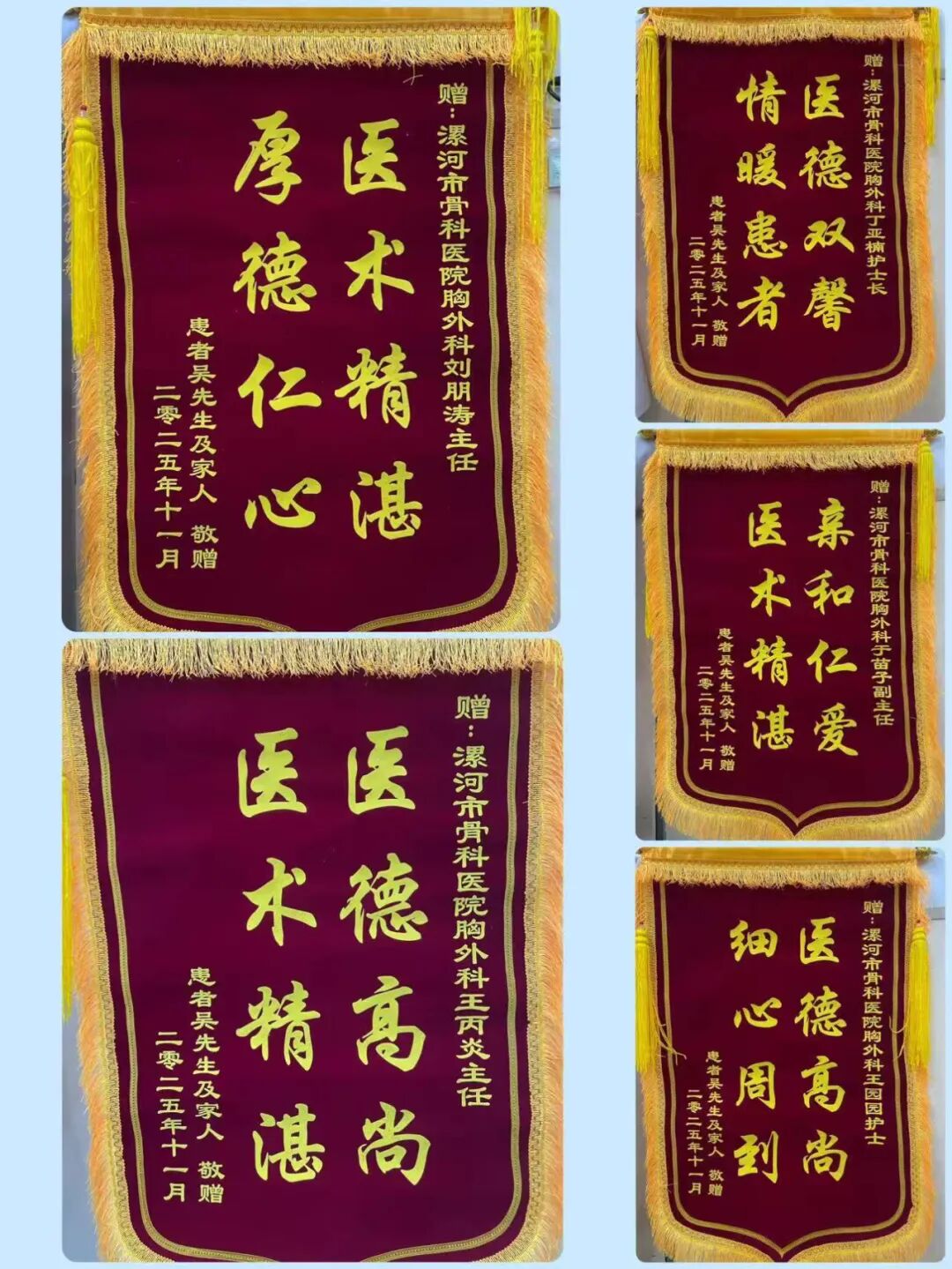 “每次來這里,都能感受到家人般的溫暖。”患者的話語樸實(shí)而真摯。他將多次診療中積累的感動(dòng),凝練成五面錦旗,分別贈(zèng)予科室主任、護(hù)士長(zhǎng)、主管醫(yī)生、責(zé)任護(hù)士及全體醫(yī)護(hù)團(tuán)隊(duì)。他說,正是這份跨越多次診療的持續(xù)守護(hù),讓他有了堅(jiān)持下去的勇氣,這份情誼值得永遠(yuǎn)銘記。
