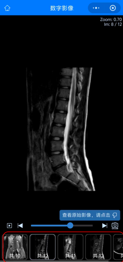 05 而點(diǎn)擊“查看影像”后查看到的患者的影像圖像,可以選擇下方紅色方框內(nèi)不同影像檢查或圖象處理方法來查看不同影像圖像。