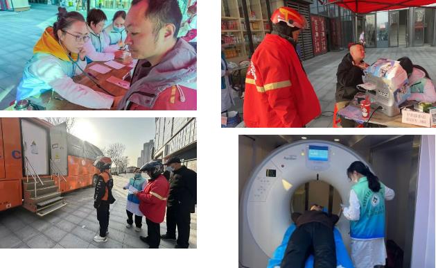 在紀委書記劉國鋒的帶領下,來自內科、超聲科、醫(yī)學影像科等科室的骨干醫(yī)護組建專項志愿者團隊,針對外賣小哥長期騎行、作息不規(guī)律的職業(yè)特性,定制了“高效精準”的健康篩查方案——不僅涵蓋心電圖、甲狀腺彩超、血壓檢測、骨密度檢測等基礎項目,更調配院內先進移動CT車進駐,讓小哥無需中斷工作,利用送餐間隙就能完成全方位健康評估。