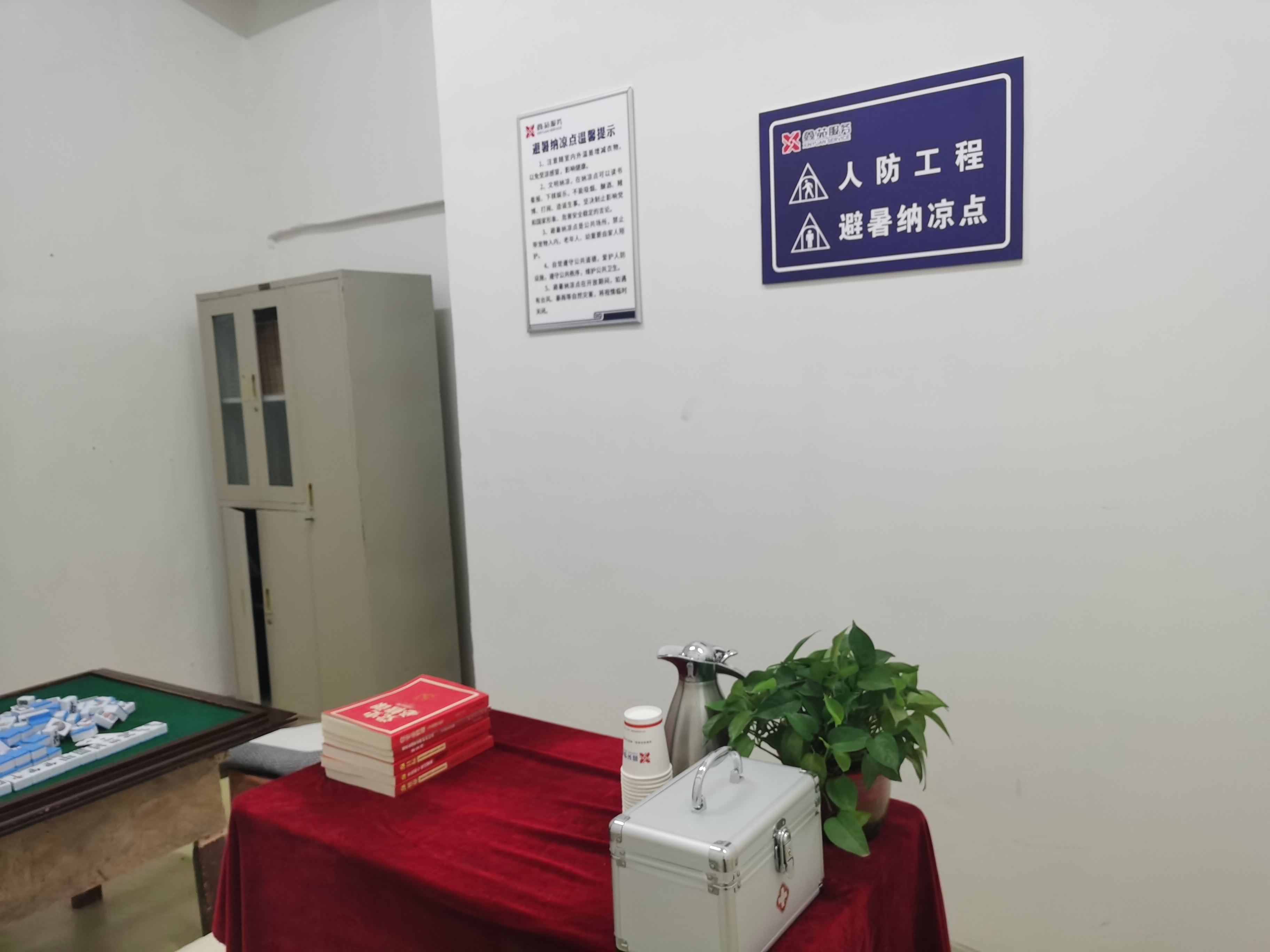 場(chǎng)所安裝大功率空調(diào)設(shè)備,營(yíng)造清涼愜意的環(huán)境;設(shè)置飲水區(qū)域,提供免費(fèi)的冷、熱水,配備充電插座,方便市民為電子設(shè)備充電;設(shè)有急救箱,配備藿香正氣水、清涼油、體溫計(jì)等常用防暑和急救藥品,隨時(shí)應(yīng)對(duì)可能出現(xiàn)的身體不適情況。此外,還擺放了涵蓋黨史、科普、人防等方面的書籍和報(bào)刊雜志,供市民在納涼時(shí)閱讀學(xué)習(xí),充實(shí)精神世界;準(zhǔn)備象棋、跳棋、麻將等娛樂用品,為市民提供休閑娛樂選擇,增進(jìn)彼此之間的交流互動(dòng)。