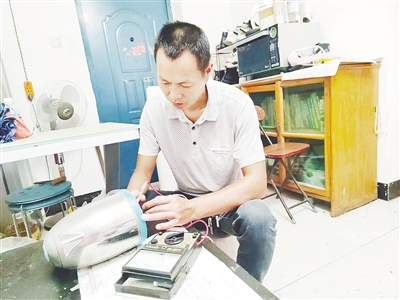 7月24日上午,記者在香堤左岸小區(qū)見到程凱亞時,他正在家修一個電水壺(如圖)。“這是參加社區(qū)志愿服務活動時,一位阿姨讓我?guī)兔π薜?。當時沒有修好,我就拿回來了,等修好了再給她送過去。”程凱亞告訴記者。