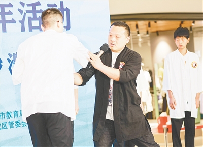 4月12日,以“非遺傳承 漯在其中”為主題的漯河市首屆非遺展演年活動第二場展演在西城區(qū)萬達(dá)廣場舉行。趙偉超帶領(lǐng)弟子們登臺表演了八卦掌,并為觀眾講解八卦掌的獨(dú)特技法和練習(xí)要點(diǎn),讓更多人感受到了傳統(tǒng)武術(shù)的獨(dú)特魅力。