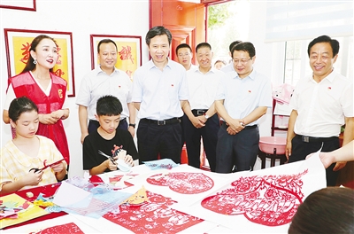 8月5日,省委常委、宣傳部部長江凌在舞陽縣調(diào)研新時代文明實(shí)踐中心陣地建設(shè)和志愿服務(wù)活動開展情況。