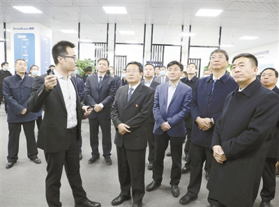 11月30日上午,市委書記蒿慧杰、市長(zhǎng)劉尚進(jìn)與來賓一起參觀中原鯤鵬創(chuàng)新中心漯河分中心等平臺(tái)。