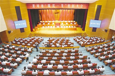 上午10時,大會開始。會議宣讀了中共漯河市委關(guān)于表彰漯河市優(yōu)秀共產(chǎn)黨員、優(yōu)秀黨務(wù)工作者和先進(jìn)基層黨組織的決定。劉尚進(jìn)、賈宏宇、李思杰、呂巖等為受表彰代表頒獎。