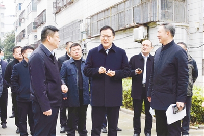 3月17日上午,市委書記秦保強(qiáng)等在郾城區(qū)龍塔街道淞江小區(qū)察看社區(qū)網(wǎng)格化管理情況。
