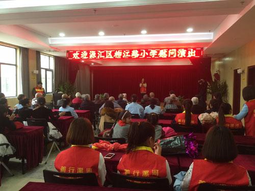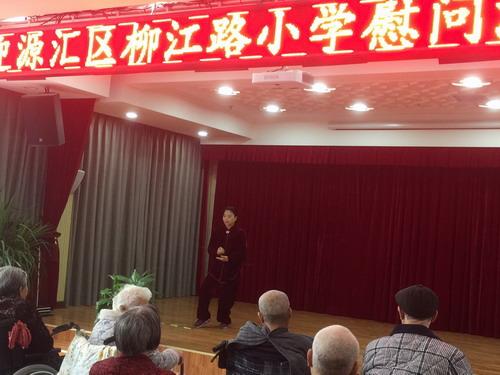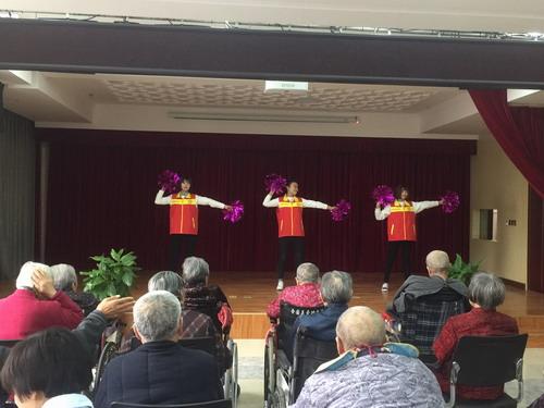 上午9:00志愿者們準(zhǔn)時抵達老年公寓,在老年公寓的會議廳志愿者們?yōu)槔先藗儷I上了精心準(zhǔn)備的節(jié)目,老師的武術(shù)表演、歌曲、舞蹈贏得了老人們的陣陣掌聲,逗得老人們開懷大笑??吹嚼先藗冃腋5男δ槪驹刚邆兏械侥蟮男牢颗c喜悅。演出結(jié)束后,志愿者同護理人員一起把老人們護送到他們的房間,黨員志愿者們和老人們親切交流,幫助老人整理房間,打掃衛(wèi)生,給老人梳洗、剪指甲,和老人們聊家常,關(guān)切的詢問他們的身體狀況和目前的生活狀況,并把給老人們帶去的糕點一一送到老人手中。