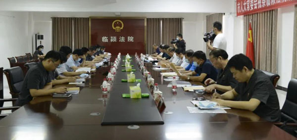 視察組一行在我院三樓會議室開展交流座談會。會上,黨組書記、院長王黎明從深入開展掃黑除惡專項斗爭、懲治危害食品藥品安全等涉民生領域犯罪、懲治電信詐騙等新類型經(jīng)濟犯罪、新冠肺炎疫情影響下的刑事審判工作、推進以審判為中心的刑事訴訟制度改革、推進刑事審判公開,開展陽光司法活動等七個方面就臨潁縣法院2018年以來刑事審判工作情況、存在問題和困難及下一步工作打算,作了詳細匯報。視察組成員針對我院人案矛盾、裁判文書說理、老舊審判樓改建等問題進行了熱烈討論。