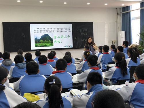 六年級的李敏杰老師,給我們帶來了《青山不老》。李老師課堂節(jié)奏緊湊,注重知識的連貫性,熟練的運用多媒體教學,渲染氛圍,吸引學生注意力調動學生積極性!學生們預習認真,整節(jié)課自學氛圍很濃厚。