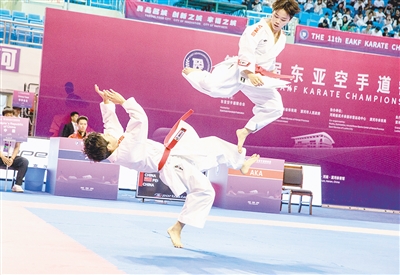 (記者 楊 光)5月10日上午,第十一屆東亞空手道錦標(biāo)賽在市體育館開幕。來自中國(guó)、日本、韓國(guó)、朝鮮等7個(gè)國(guó)家和地區(qū)的179名運(yùn)動(dòng)員在這里進(jìn)行為期兩天的激烈角逐。中國(guó)空手道隊(duì)派出了61名運(yùn)動(dòng)員參賽所有組別的角逐。記者了解到,國(guó)家隊(duì)中有我市輸送的運(yùn)動(dòng)員徐俊博和王雨涵。