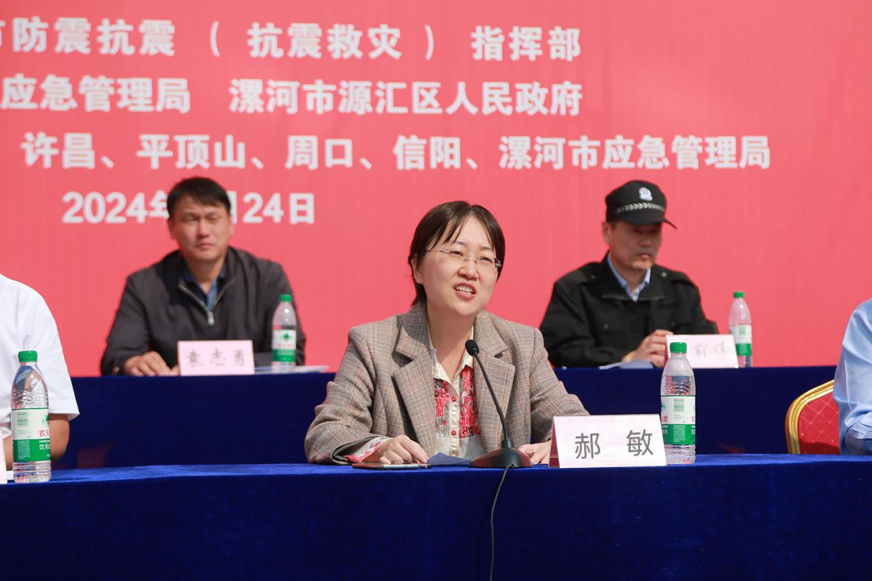 9月24日,豫南地震快速應(yīng)急聯(lián)隊(duì)2024年度聯(lián)合地震應(yīng)急演練在漯河市源匯區(qū)舉行。此次演練由漯河市防震抗震(抗震救災(zāi))指揮部主辦,漯河市應(yīng)急管理局、源匯區(qū)人民政府承辦。平頂山市、許昌市、漯河市、南陽市、周口市、駐馬店市、信陽市應(yīng)急管理局一同參加演練。河南省地震局黨組成員、副局長郝敏,漯河市政府副秘書長王振甫,漯河市應(yīng)急管理局黨委書記、局長孫全忠, 源匯區(qū)委副書記、區(qū)政府區(qū)長史一鳴等出席活動(dòng)。