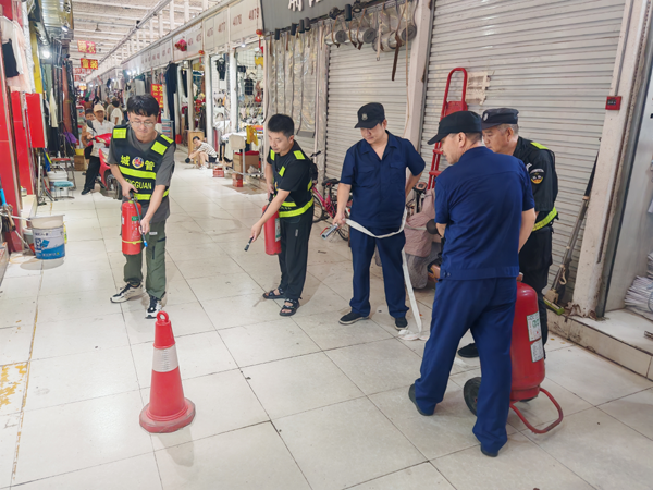 此次演練重點(diǎn)培訓(xùn)市場(chǎng)工作人員、保安、商戶面對(duì)突發(fā)火情怎樣快速、安全、有效的做出應(yīng)對(duì),保障人員生命安全,使火災(zāi)損失降至最低程度。同時(shí),熟悉應(yīng)急救援職責(zé)及流程并對(duì)市場(chǎng)商戶進(jìn)行消防知識(shí)宣傳,切實(shí)提高市場(chǎng)職工、商戶的自防自救能力。