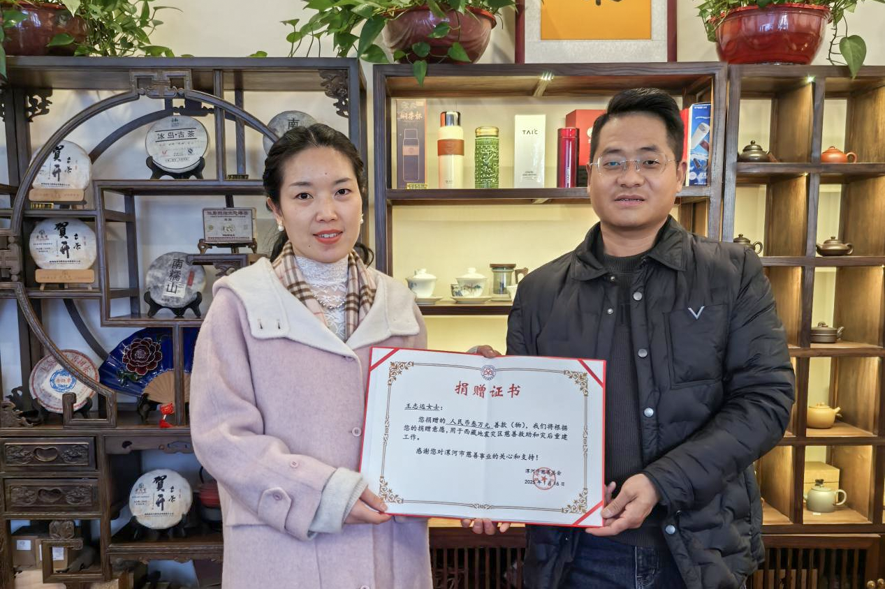1月23日,漯河市源匯區(qū)梁棟威、梁思雅兄妹在監(jiān)護(hù)人和星火志愿團(tuán)志愿者陪同下,來到市慈善總會,將平時積攢的壓歲錢1萬元捐獻(xiàn)給市慈善總會,用于支援西藏定日縣地震災(zāi)區(qū)藏族同胞的災(zāi)后重建和生產(chǎn)生活。