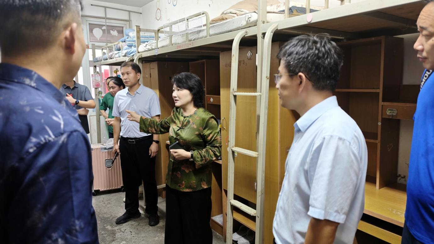 隨后,張祎捷一行走訪了源匯校區(qū)臨床醫(yī)學院、口腔醫(yī)學院、護理學院、藥學院、中醫(yī)學院、醫(yī)技學院迎新點,詳細了解報到情況,仔細詢問新生報到流程,注冊進度和志愿服務(wù)安排。每到一處,她都與新生、家長及工作人員深入交流。在學生宿舍區(qū),她重點查看了生活服務(wù)保障措施,認真傾聽學生初入校園的感受,鼓勵他們積極適應(yīng)新環(huán)境、融入大集體,盡快以飽滿的狀態(tài)投入大學生活,并感謝家長對學校的信任與托付。此外,張祎捷一行還前往校區(qū)食堂、超市、志愿服務(wù)點,檢查餐飲衛(wèi)生、商品供應(yīng)、志愿服務(wù)等情況,確保新生在校生活需求得到全方位保障。