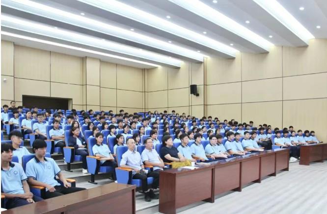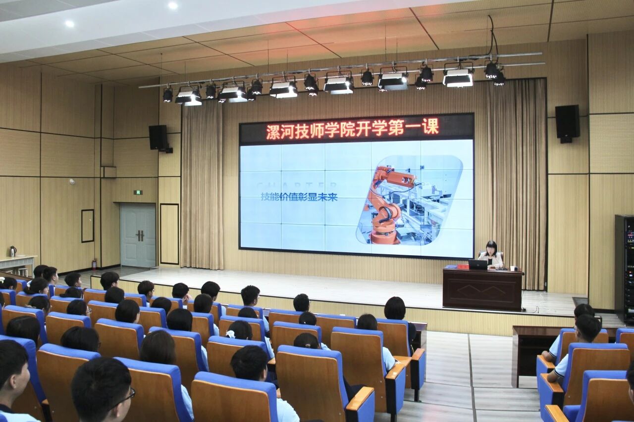 9月9日,漯河技師學院院長馮凱在潤德樓308報告廳以《技能照亮前程,勞模工匠領航》為題,為2025秋季新生講授“開學第一課”,以有高度、有深度、有情懷、有溫度的思想政治理論課形式,點燃漯技學子逐夢技能的報國熱情?;顒佑蓪W院黨委副書記范偉鋒主持。