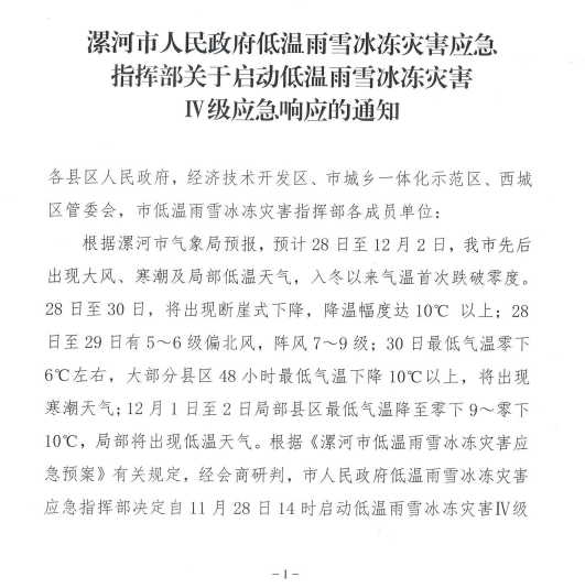 來(lái)源:漯河市人民政府低溫雨雪冰凍災(zāi)害應(yīng)急指揮部 時(shí)間:2022-11-28 14:10:00 點(diǎn)擊: