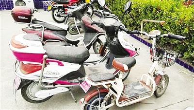 四輛被盜的電動車。 本報記者 王 輝 攝