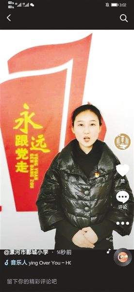 抖音上,該校黨支部組織委員劉娜分享了兒童團員王二小的故事,陳美老師講述了特級英雄黃繼光的故事,孟舒老師分享了駐村第一書記黃文秀的故事,吳珂老師講述了抗日英雄趙伊坪的故事……一段段難以忘卻的歷史,一個個感人至深的故事,讓抖音終端的孩子們眼含熱淚,深受觸動。