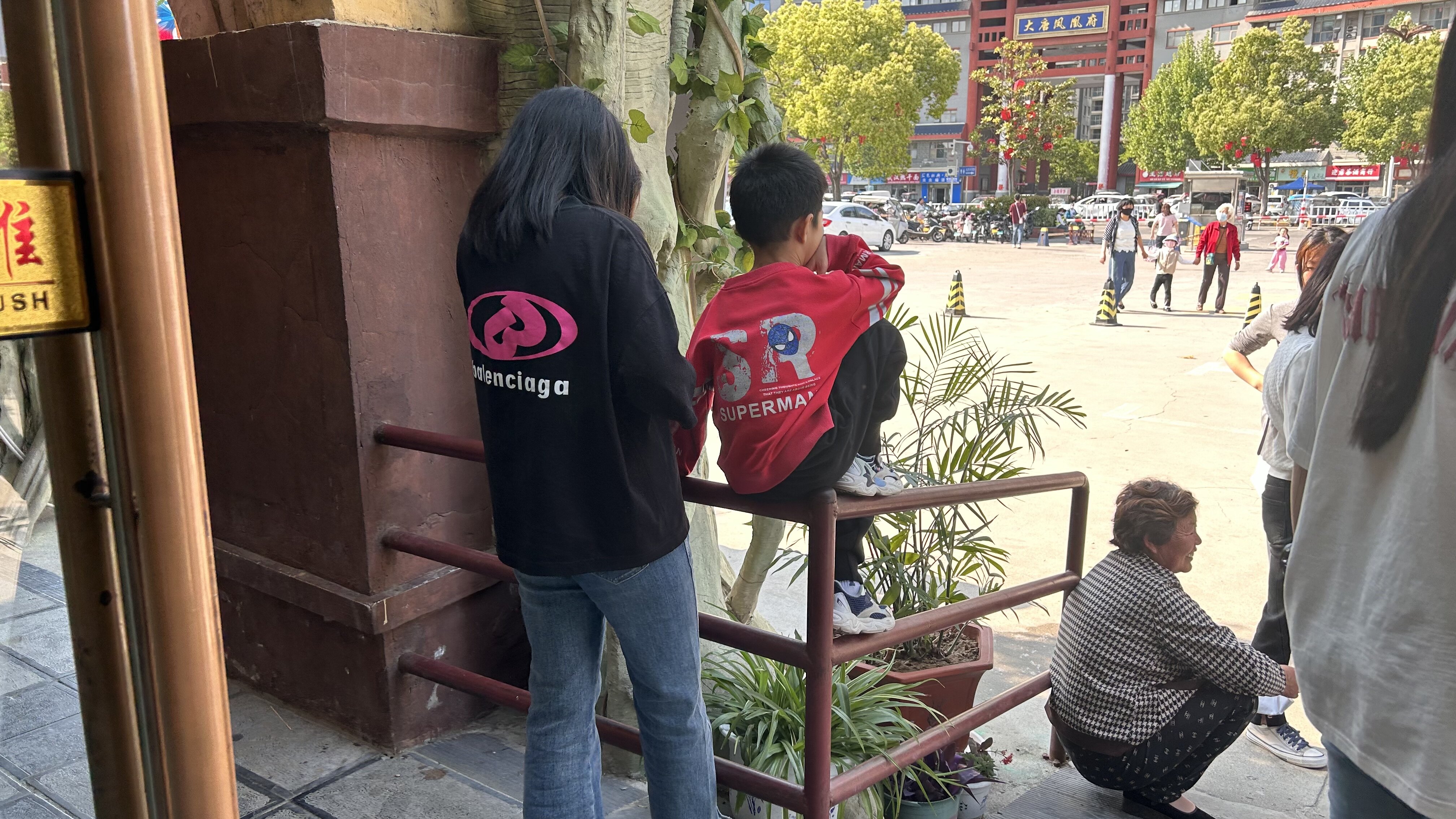 五一期間,神州鳥園,這位小孩子坐欄桿上休息不文明