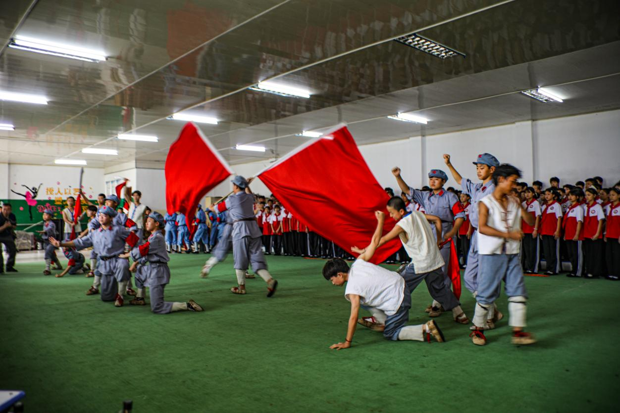 鏡頭轉(zhuǎn)向熱火朝天的“七一”節(jié)目排練現(xiàn)場(chǎng)。《紅燈記》中“鐵梅”的堅(jiān)毅,《紅色娘子軍》的颯爽英姿,《焦裕祿》的深情感人……小演員們雖臉龐稚嫩,唱念做打卻已頗具風(fēng)骨。排練廳回蕩著豫劇的鏗鏘韻律,攝影家們的鏡頭在光影流轉(zhuǎn)間,定格下傳統(tǒng)藝術(shù)在年輕一代身上煥發(fā)的勃勃生機(jī)。這些由孩子們傾情演繹的紅色經(jīng)典與優(yōu)秀傳統(tǒng)劇目,正是這所非遺傳習(xí)所教學(xué)成果的生動(dòng)注腳——建校以來,五次晉京獻(xiàn)禮中南海,多次參加央視及省臺(tái)春晚,先后榮獲中國“小梅花”金獎(jiǎng)56枚,河南省“小梅花”金獎(jiǎng)83枚、銀獎(jiǎng)31枚,累累碩果印證著薪火相傳的力量。