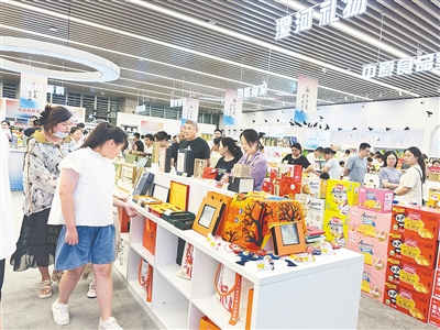 中國食品名城品牌館內更是熱鬧非凡。市民把中原食品實驗室、豫農優(yōu)品等專區(qū)圍得水泄不通。館內的收銀臺前排起了長隊。