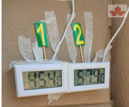夏浩桐同學(xué)告訴記者:“去年秋天,我們觀賞紅楓葉時,偶然發(fā)現(xiàn)路兩側(cè)的五角楓樹干出現(xiàn)了蛻皮壞死現(xiàn)象。寒假期間,我們又對整條路的五角楓進行了全面觀察和統(tǒng)計,發(fā)現(xiàn)壞死率竟然超過了65%。于是,我們就這個現(xiàn)象與學(xué)校張真老師進行了討論。張老師非常支持,很快便成立了由她和我們四位學(xué)生組成的‘五角楓實驗小組’。”“我們小組多次實地調(diào)查、現(xiàn)場測試后發(fā)現(xiàn),在夏季太陽直射下,五角楓樹皮西側(cè)和南側(cè)的溫度差異巨大。比如現(xiàn)在下午3點,我們測得南側(cè)(1號線)電子測溫計顯示45.4℃,而西側(cè)(2號線)測溫計則顯示高達57.9℃,兩側(cè)溫差達到了12.5℃。”夏浩桐繼續(xù)說道,“我們小組經(jīng)過多次測試、記錄數(shù)據(jù),并查閱了大量資料,還借助了‘豆包’等AI工具進行分析,最終發(fā)現(xiàn)了一些資料提到了‘日灼病’,即因太陽輻射溫度過高而導(dǎo)致的植物曬傷。我們認為,這里的五角楓很可能就是患上了日灼病。”