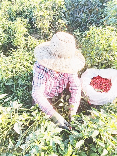 辣椒種植基地不僅讓該村村民增收,還為附近村莊的村民提供了在“家門口”就業(yè)的機(jī)會(huì)。從土地平整、栽秧到如今的采摘分揀,西軍王村及附近村莊的40多名村民在基地務(wù)工。“摘1公斤辣椒掙1塊錢。俺一天能摘70公斤,照顧老人和賺錢兩不誤。”正在摘辣椒的村民張秀琴高興地說(shuō)。