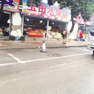市區(qū)漓江路一停車位上,商家擺放的障礙物。