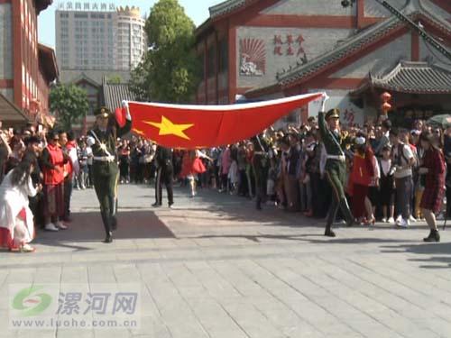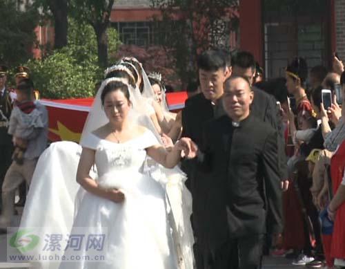 今年的青年集體婚禮,漯河市首次將“愛國文化元素”融入其中,特別邀請了天安門原國旗護衛(wèi)隊、中國第一國旗手高紅浦及戰(zhàn)友現(xiàn)場舉行升旗儀式。上午9點,莊嚴肅穆的升國旗儀式開始,12對新人和現(xiàn)場的親朋好友在飄揚的國旗下共唱國歌。升旗儀式結(jié)束后,高紅浦和戰(zhàn)友還給每對新人送上了一面鮮艷的五星紅旗作為新婚禮物。