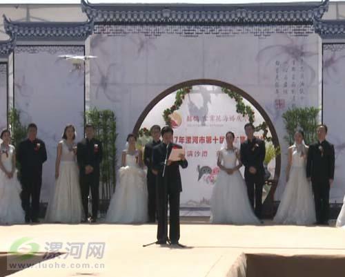 五一假日期間,漯河市第十屆青年集體婚禮在市區(qū)沙澧河畔舉行。12對新人在親朋好友和市民們的見證下,一同許下愛的誓言,踏上幸??鞓返男律?。