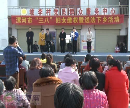 在國(guó)際“三八”婦女節(jié)來(lái)臨之際,為更好的提高婦女同胞的法律維權(quán)意識(shí),漯河市婦聯(lián)在召陵區(qū)坡李村舉辦婦女維權(quán)暨送法下鄉(xiāng)活動(dòng),將法律送至農(nóng)村婦女身邊。